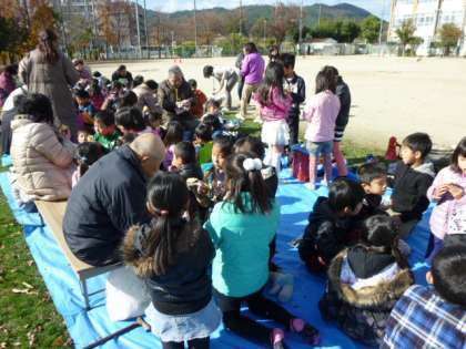 ホクホクのやきいもが焼きあがりました!みんなでおいしく「いただきます!」。風は冷たかったですが,心も身体もほかほか温まりました。