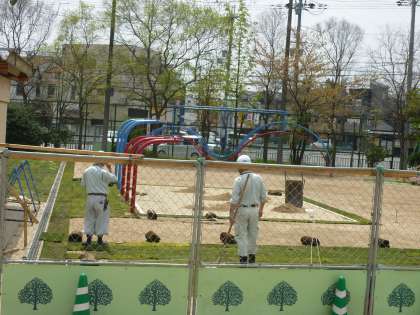 校庭の芝生化工事進行中