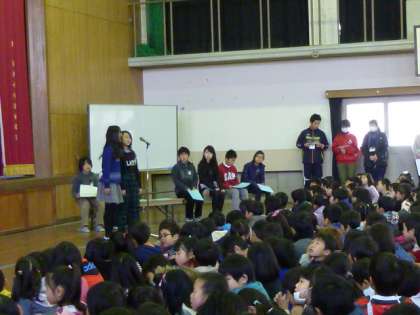 今年度最後のせせらぎタイムは,最高学年である6年生が,この1年でさまざまな行事を通して学んだことや,自分の将来の夢について発表しました。それを受けて会場からも,下の学年の子どもたちが自分の夢を話してくれました。