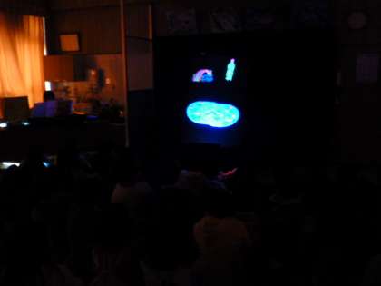 ブラックライトを使って映像を映し出しながら,「蜘蛛の糸」のお話をしていただきました。みんな大変興味深く聞いていました。