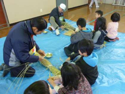 それぞれのコーナーに分かれて体験をします。「なわない」「はねつき」「しょうぎ」をしています。