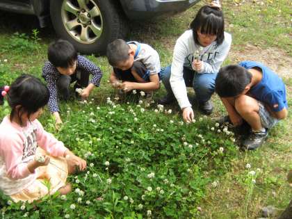 そこで,みんなでシロツメクサを集めて