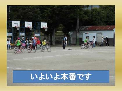 と言いながらも,子どもたちは,楽しんで自転車の基本ルールを学びました。