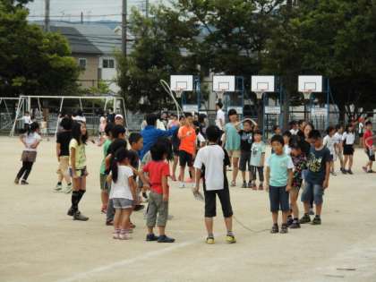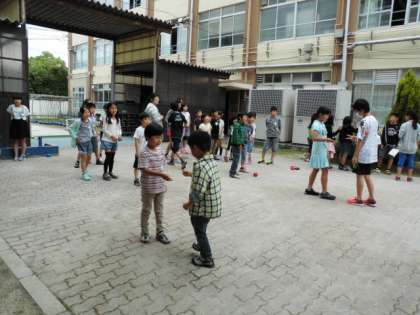教室ではフルーツバスケット,中庭ではどんじゃんけん,運動場では大なわをしました。初めてなので,