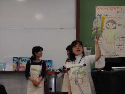 「光の旅 かげの旅」「じごくのそうべえ」「木のまつり」などを読んでいただきました。高学年でも読み聞かせは大好きで,絵本の世界に引き込まれて聞いていました。