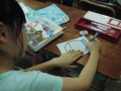 きれいな字でていねいに,色もぬって,ていねいに切り取ります。みんなのメッセージを集めて貼り合わせたら出来上がりです。