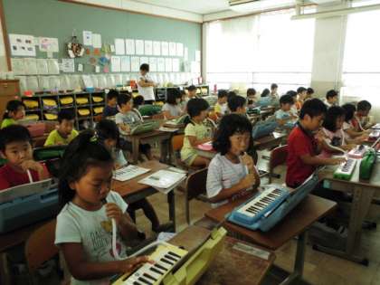 1年生は,夏休みの宿題で,鍵盤ハーモニカの練習をしてきました。
