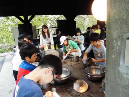 昨日少し大変な思いをした野外炊事ですが,みんなの力は素晴らしいです。一日で学習しました。目を見張る手際の良さです。