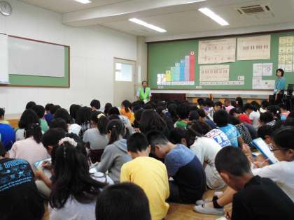 4年生は社会科「事故や事件を防ぐ」の学習で,桂川見守り隊の方に来ていただきお話を聞きました。