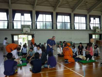 普段の生活の中で役立つよう,また,水泳指導に備えて,人工呼吸やAEDの使い方等の実技研修を受けています。
