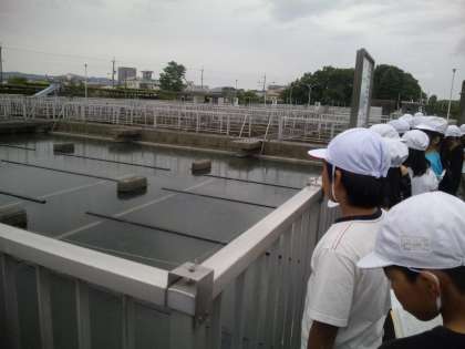 鳥羽水環境保全センターでは,汚くなった水をきれいにしていく過程を見学しています。