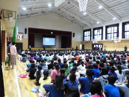 校長先生から,新しい体育館の設備についての説明がありました。そして,災害はいつやってくるか分からないから,正しい判断と行動が大切なこと。かけがえのない命を大切にしようというお話を聞きました。
