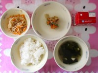 今日の給食時間にサンタクロースが,チョコレートケーキを持って各教室にやってきました。