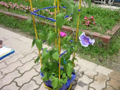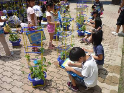 一年生が育てているアサガオが,大きくなりました。自分が育てているアサガオなので,1年生もよ〜くみて観察しています。夏休み前に持ち帰り,引き続き各家庭で観察していきます。