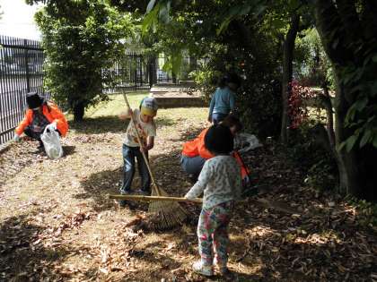 イモ畑周辺,学校園,中庭,北庭。溝蓋も上げて,普段はできないところにも取り組みました。