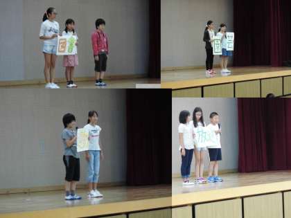 今年度1回目の児童集会は,各委員会からのお知らせです。委員長・副委員長の自己紹介と活動計画の発表です。