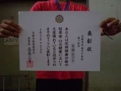 6年生の「よい歯の表彰」では,28名の児童が,表彰を受けました。
