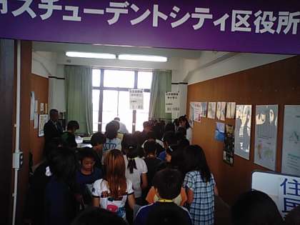 いよいよ活動開始!まずは,区役所で「住民登録」をし,次に銀行で給料(電子マネー)をカードにチャージします。これで,りっぱなスチューデントシティの市民です。