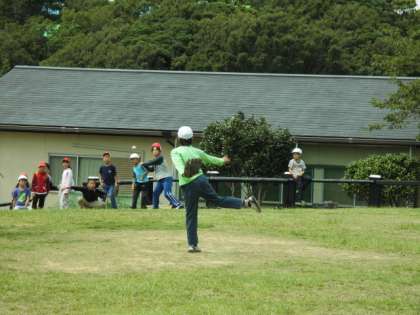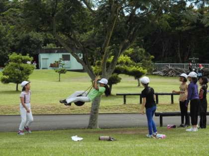 ナイトハイクのコースの下見の後は,自由遊びです。芝生広場などで,思い思いのスポーツを楽しみました。