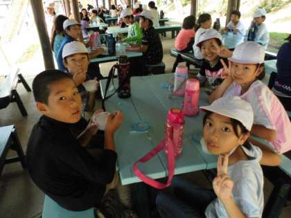 遊んだ後は,かき氷タイム。「みぞれ」味です。とてもおいしい甘さです。