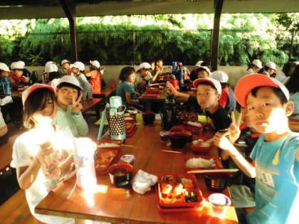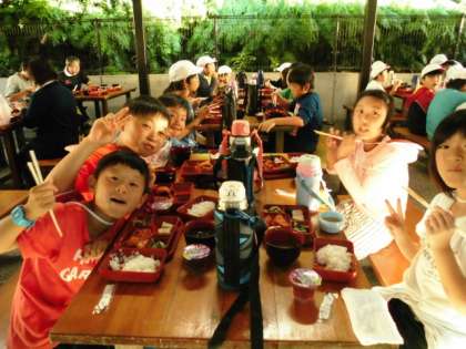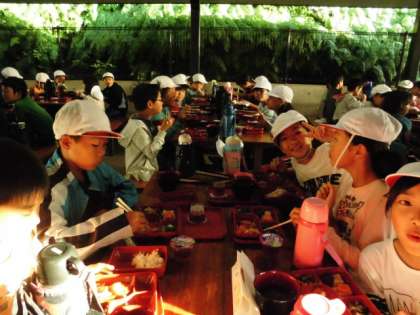 夕食です。食事の準備後片付けも,食事係を中心に手際よくできるようになりました。たくさん食べて,明日は元気で帰ります。