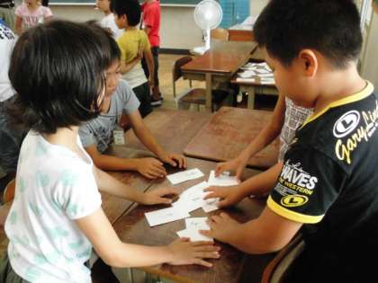 どの「へん」とどの「つくり」を組み合わせるとどんな漢字になるのかな。グループで漢字パズルゲームをしながら楽しく学習しました。
