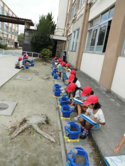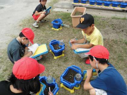 ほうれんそうとブロッコリーの種まきをしたのですが,その観察を行いました。とっても小さいかわいらしい芽が出ていました。大きく育つかな。