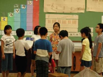 3つのパートに分かれ,グループごとに合唱練習をしました。この後,それぞれのグループの演奏を聴き合いました。