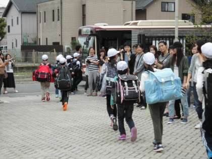 多くの保護者の方や教職員に見送られていよいよ出発!!