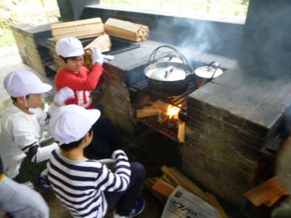 火の係の子どもたちは熱さをものともせず、しっかりと火の番をしています。そのかいあって順調に仕上がっていきました。