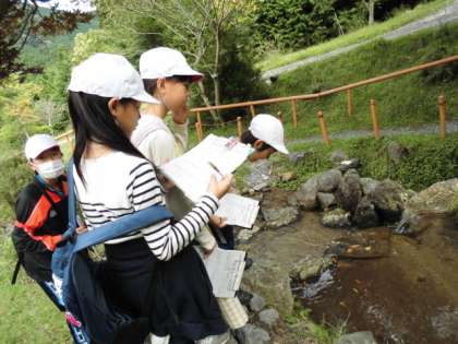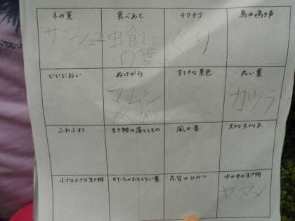 ネイチャービンゴは,山の家の自然の中でいろいろなものを見つけて回ります。グループで協力して,五感を働かせての挑戦です。