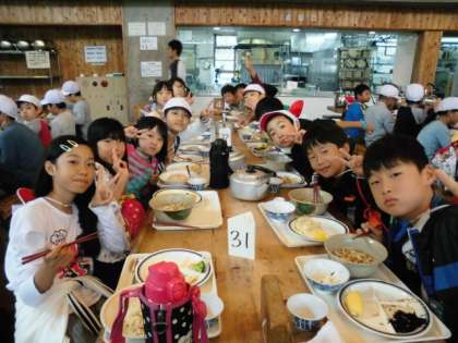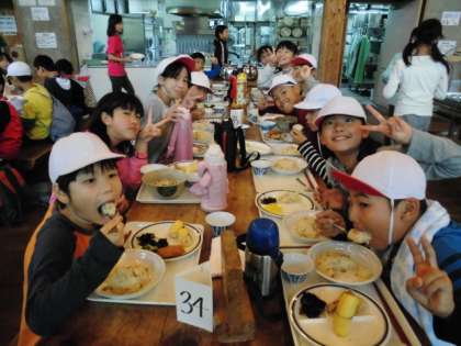 今日のお昼は,食堂での食事です。チャーハンかうどん・まぜごはんかを選びます。プラスバイキングです。チャーハンが人気でした。