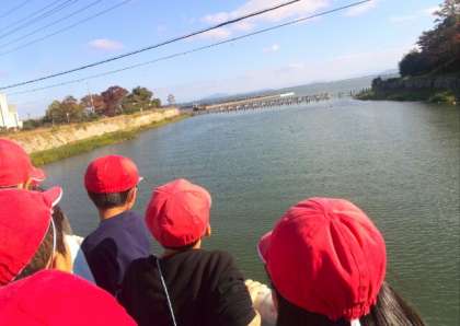 取水口見学。琵琶湖も綺麗に見えました。
