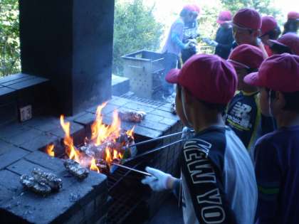 今日の活動のめあては「挑戦」です。さっそく,朝食はパックドック作りに挑戦しました。火加減になれず少しおこげもできましたが,おいしく出来上がりました。