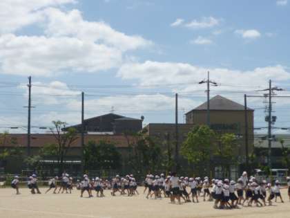 今日は初めて運動場で練習をしました。