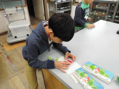 科学クラブでつくりました。ろうそくをとかし、けずったクレヨンを混ぜて色をつけ、カップに収めます。お好みでアロマの香りを入れたり、かけらをのせてデコレーションしたりもしていました。