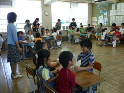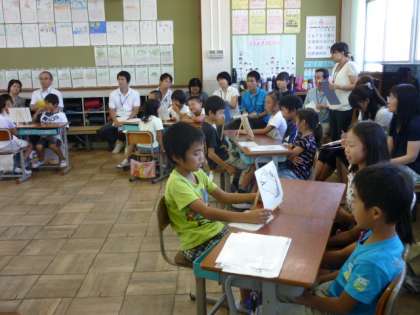 9月10日(金)5校時,2年4組の国語「サンゴの海の生きものたち」の授業を本校の教職員が参観して,研修をしました。