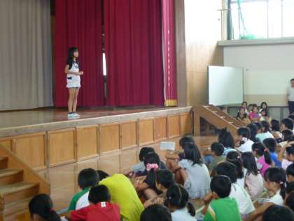 ひとりの発表であっても,マイクなしで820名の子どもたちが静かに聞くことができました。