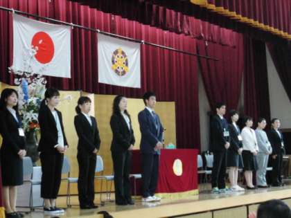 春休みが終わり,久しぶりに子どもたちがやってきました。今年度新しく赴任された教職員の着任式を行いました。