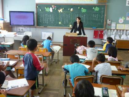1年生の道徳の学習を他の先生方にも見てもらいました。