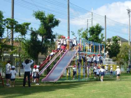 2年生は,芝生広場で遊具を使ったり,おにごっこをしたりしました。