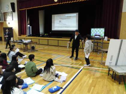 テレビ放送のおこなわれ方を聞いた後は、実際に各クラスの代表の人が映像に合わせてアナウンサー体験をさせていただきました。