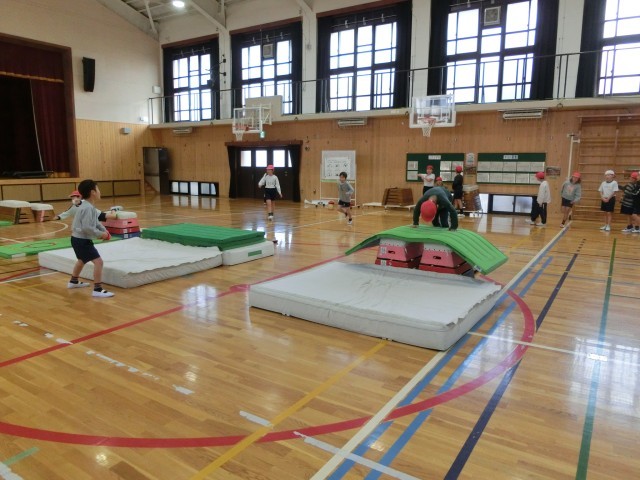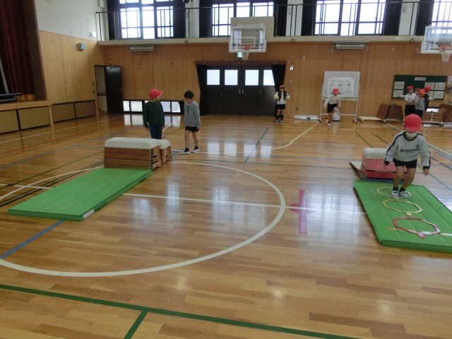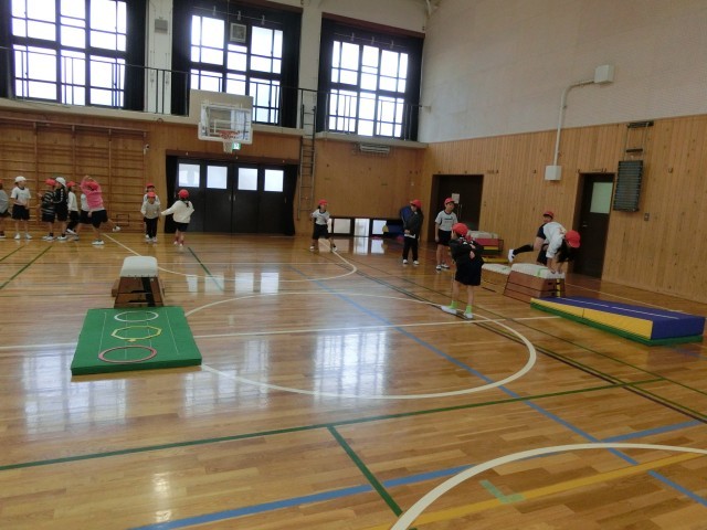 体育で「とびばこあそび」に取り組んでいます。安全に気を付けて、自分のめあてを意識して取り組む姿が見られました。