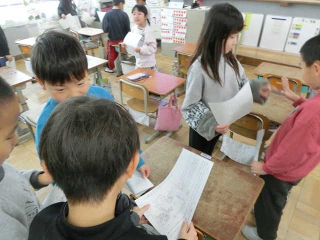 紹介した後に感想を伝えあい、お互いの考えのおもしろさやよさを感じられました。