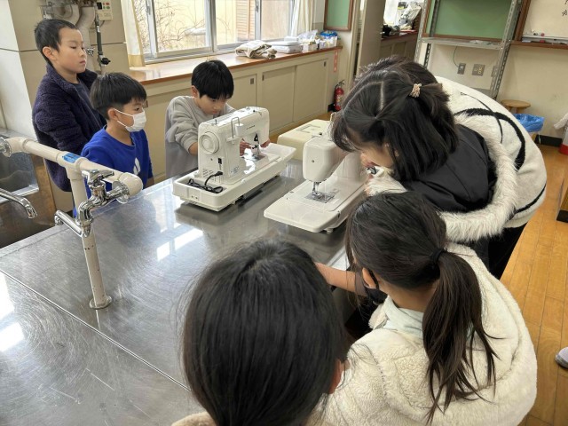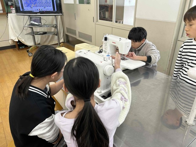 家庭科の学習では、ミシンを使って、ランチョンマットを縫う学習をしています。