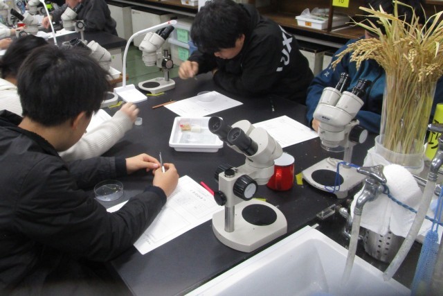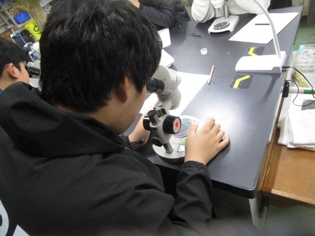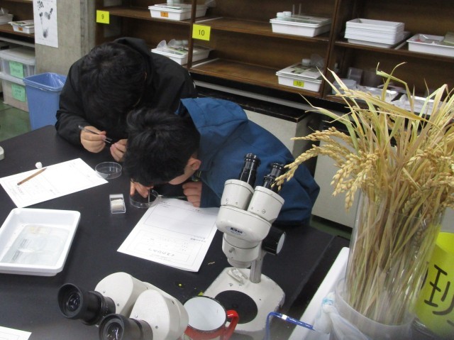 イネについての話を聞いたり、実体顕微鏡を使って観察をしたりしました。
