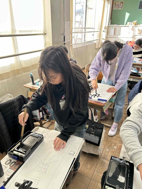 書写では、画仙紙を使って書き初めに挑戦しました。