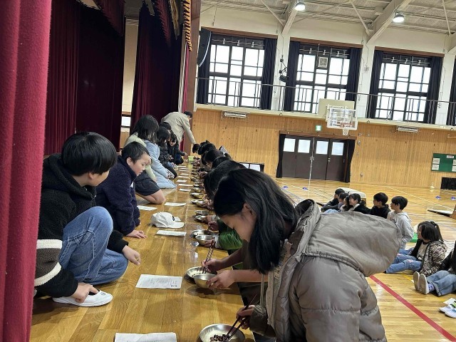 箸の使い方に気をつけて豆を一生懸命つまんでいました。