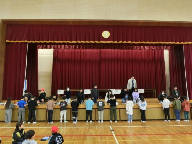 お箸の持ち方を栄養教諭から教わって練習した後の大会。