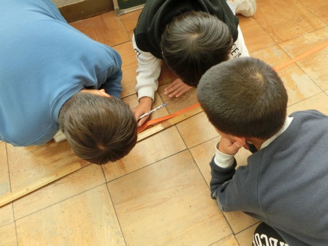グループで協力して長さを紙テープに写し取りました。そして、グループのみんなで